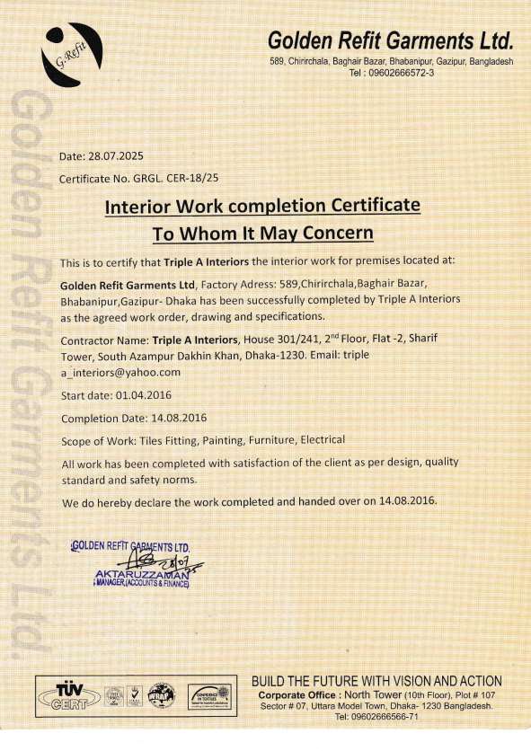 WORK COMPLETION CERTIFICATES